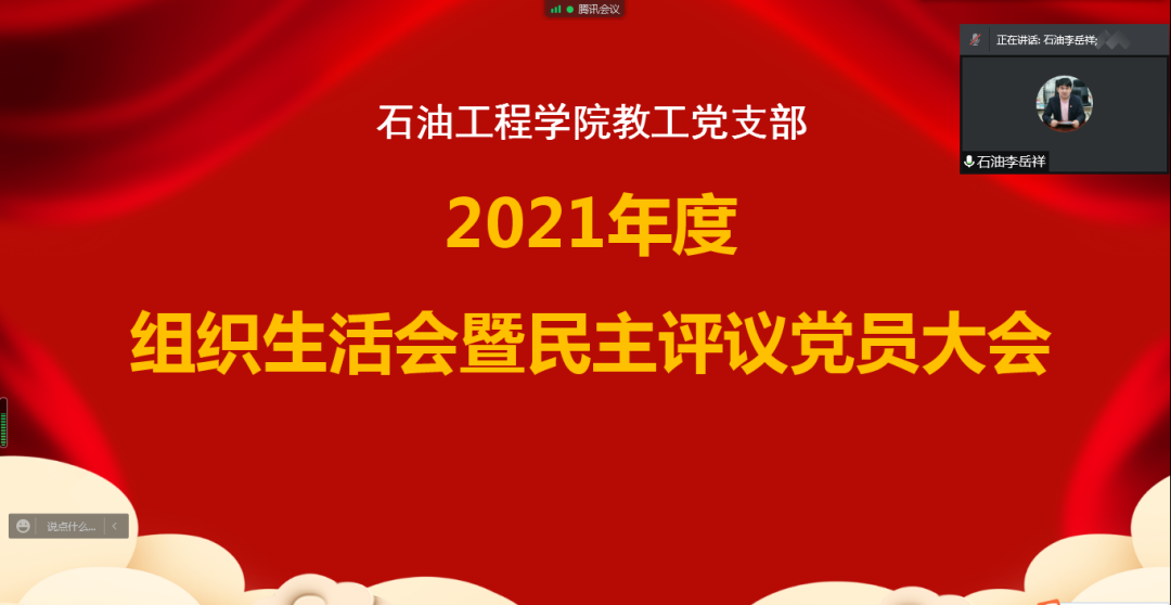 以深入学习贯彻习近平新时代中国特色社会主义思想,学习贯彻党的十九届六中全会精神为主题,紧紧围绕深入领会党的百年奋斗重大成就和历史经验来严格执行党的组织生活制度,根据校党委工作安排,石油工程学院教工党支部于3月15日召开2022年组织生活会暨民主评议大会,支部全体党员参加会议,会议由教工党支部书记李岳祥主持。