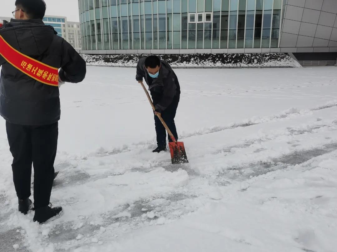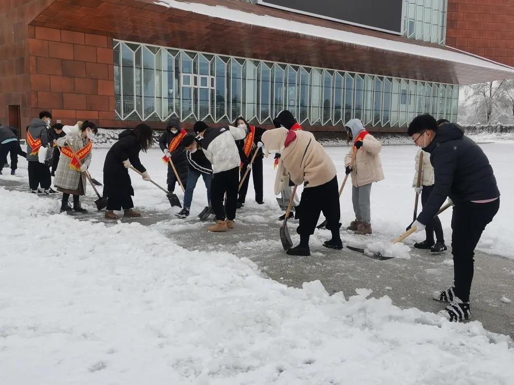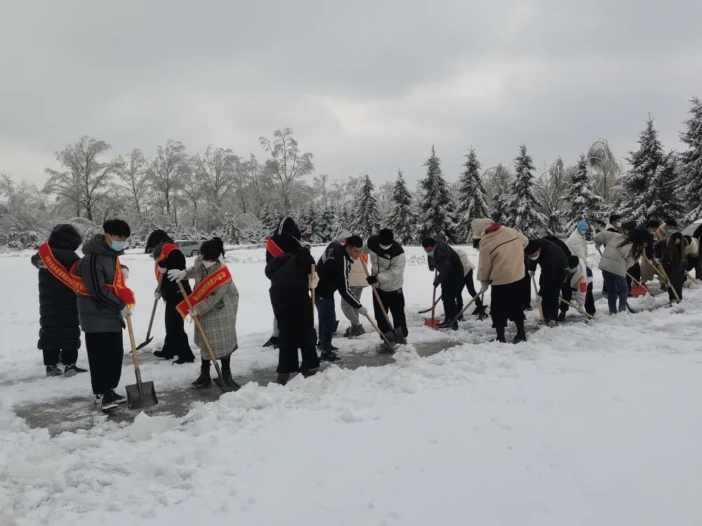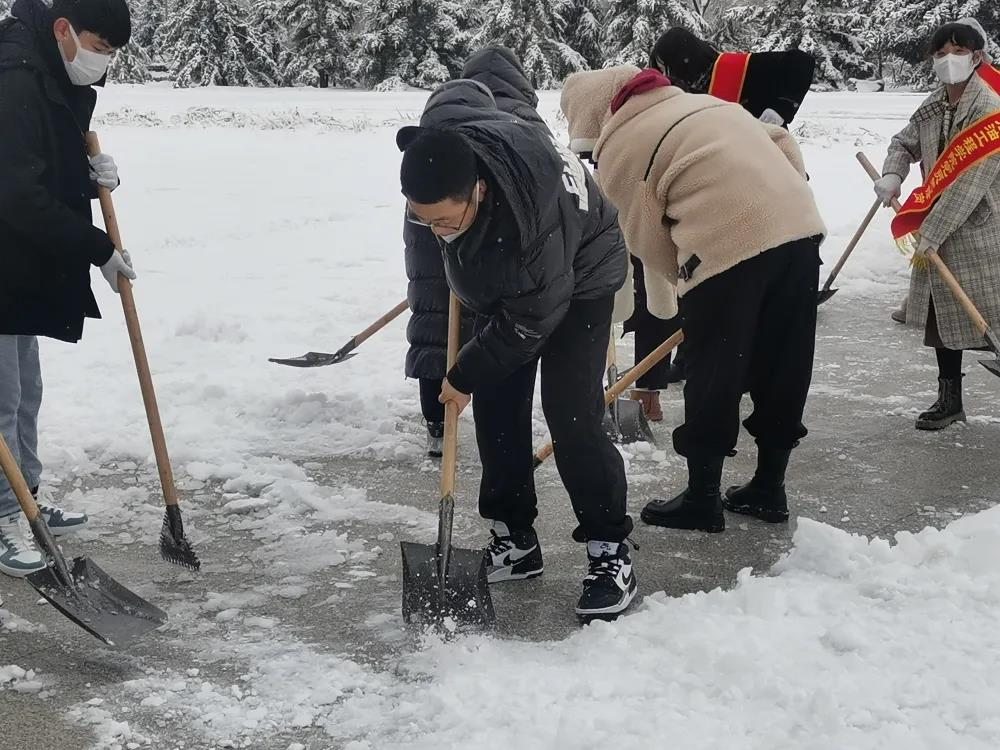 为缓解暴雪过后校内道路积雪给师生出行带来不便,确保校园内道路畅通,11月10日,我院全体学生党员及入党积极分子,在党总支书记刘雁春和学生党支部书记贾延迪的带领下迅速展开行动,开展除雪清道工作,发挥党员干部的先锋模范作用,以实际行动践行初心使命,集中力量扫雪除冰,为师生出行安全尽一份力。