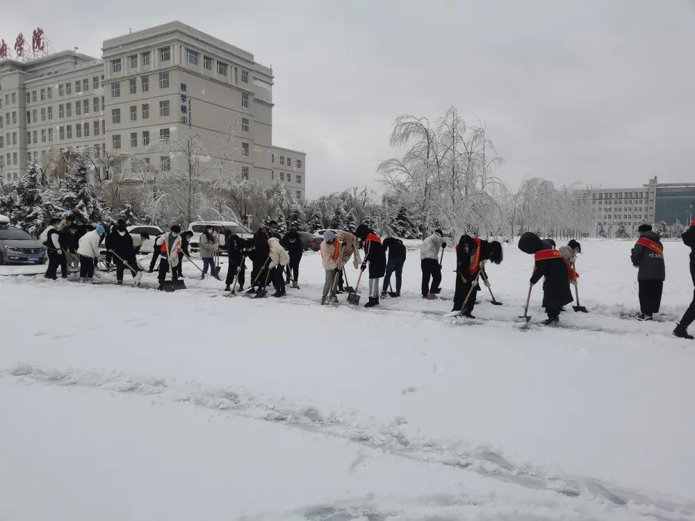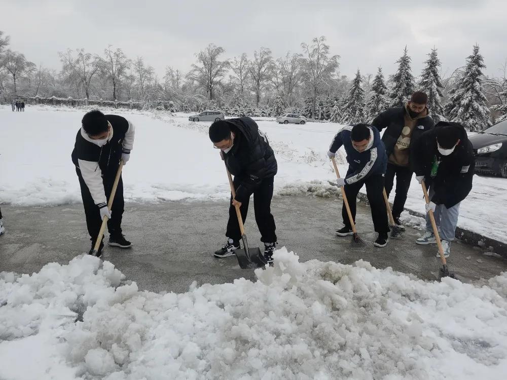 清雪过程中,学生齐心协力,配合默契,忙碌的身影构成了校园一道亮丽的风景线。经过同学们的奋力清扫,方便了教职工和同学们的出行。同学们团结一致、凝心聚力,展现了敢于吃苦、勇于奉献的精神,更传递了一份冬日里的温暖。