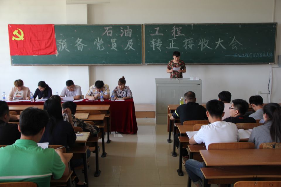 6月13日中午12点,石油工程学院在主教426教室召开学生党支部大会,讨论并通过了王弘宇等16名预备党员转为正式党员和接收于明阳等13名党员发展对象为中共预备党员的决议。我院党总支副书记康平军、学生党支部书记张雪以及学生党支部全体党员参加大会,大会由张雪主持。
