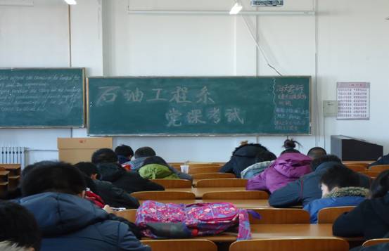 考试期间,石油工程系金铁刚书记也在百忙之中到各个教室查看同学们的考试情况,对于此次考试金书记提出:要严格要求同学们,杜绝在考试过程中的作弊现象。经过巡查,书记对此次考试纪律感到非常欣慰,同时他也非常期望大家都有一份美满的答卷。