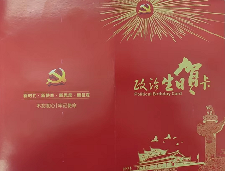 此次活动以观看党史视频、重温入党誓词、赠送生日贺卡方式展开。旨在将党史学习教育和理想信念教育紧密结合起来,进一步学习领会习近平总书记的重要讲话精神。用党的奋斗历程和伟大成就鼓舞斗志、明确方向,用党的光荣传统和优良作风坚定信念、凝聚力量,用党的实践创造和历史经验启迪智慧、砥砺品格。