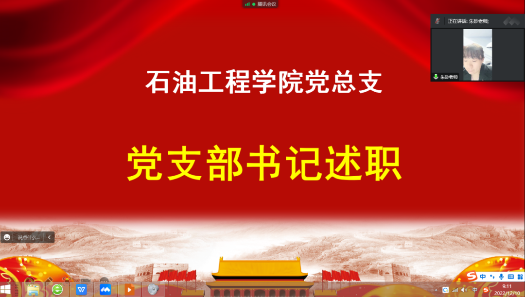 根据《伟德bv国际体育2022年度党组织书记抓基层党建述职评议考核工作实施方案》的工作部署,为推动我院党支部书记履职尽责抓党建,落实管党治党政治责任,推进全面从严治党向基层延伸,12月10日上午9点我院党总支在腾讯会议室开展2022年度党支部书记述职评议。我院院长&党总支副书记李岳祥、党总支副书记张雪、副院长&教工党支部书记朱砂、学生党支部书记王娜参加会议,党总支书记刘雁春主持会议。