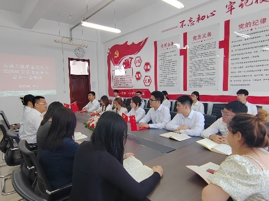 为加强党员学生在实习期间的考察培养和教育管理,进一步提升党员学生的党性修养,坚定理想信念。2023年6月30日,石油工程学院学生党支部在主教703会议室召开2020级“3+1”企业综合实习党员学生教育大会。会议由学生党支部书记王娜主持,我院党总支书记刘雁春出席本次会议,2020级全体学生党员参加。