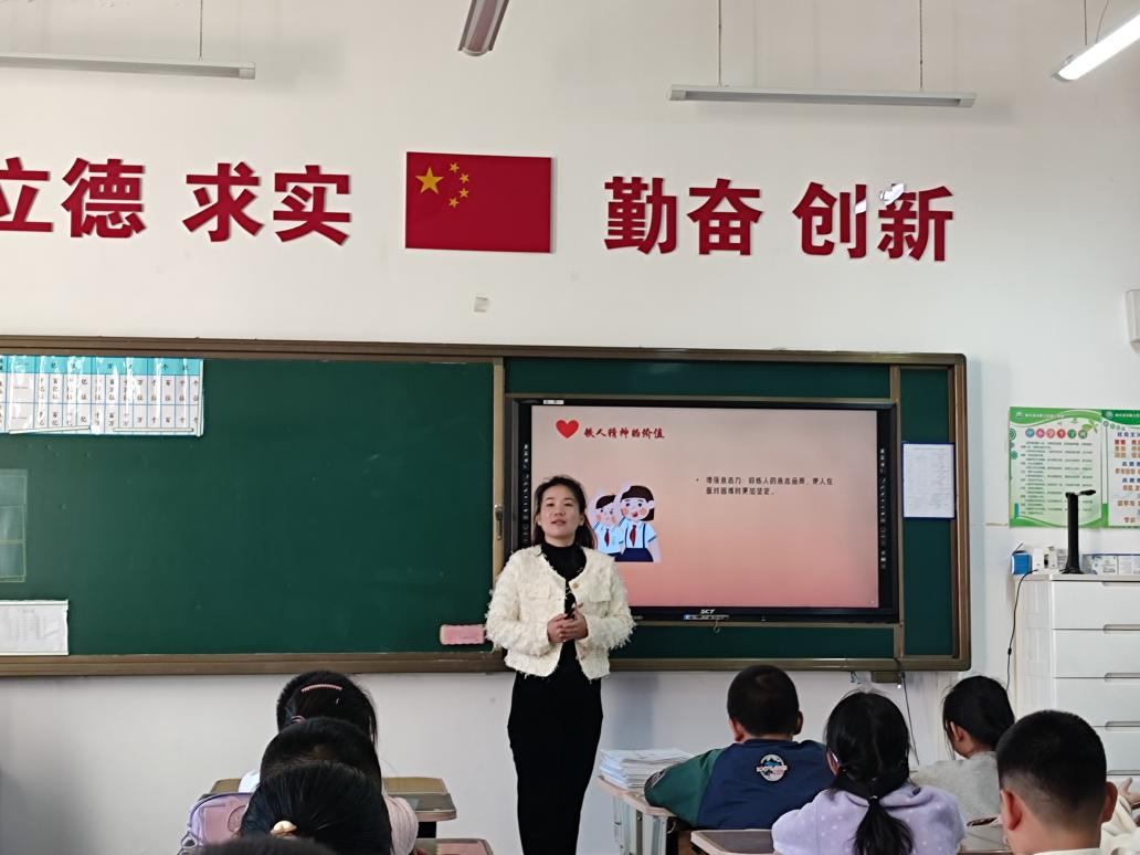 课堂上,在王娜老师的主持下,四年13班同学们积极参与课堂学习,认真听讲,主动交流,并纷纷讲述自己所知道的铁人故事,以及对大庆精神铁人精神的理解。通过王娜老师的讲解及引导,同学们了解到了大庆精神铁人精神的背景、丰富内涵和铁人王进喜的生平事迹,深刻领会了铁人王进喜艰苦奋斗的一生。孩子们凝神静听,被铁人艰苦奋斗的精神所打动,铭记铁人的不畏惧困难的拼搏精神,珍惜当下幸福的生活,激励自己刻苦努力,为实现民族的富强而努力。