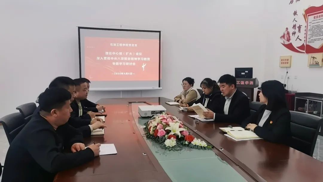 5月6日,石油工程学院党组织理论中心组(扩大)专题学习中央八项规定精。中心组全体成员参加会议,会议由党总支书记书记孙晓萍主持。