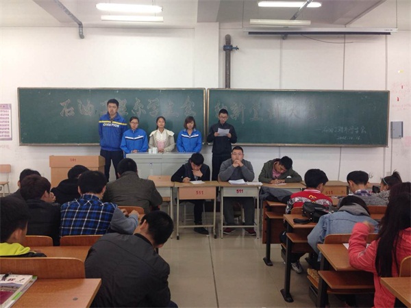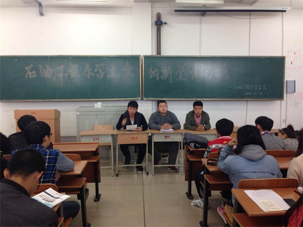 为加强系内学生工作,吸纳优秀人才,使更多有能力的同学加入到系内的学生工作当中。2014年10月16日中午12点,石油工程系学生会在主教501召开了学生会纳新宣讲大会。系学生会主席团携各部部长面向2014级全体新生进行了纳新宣讲。
