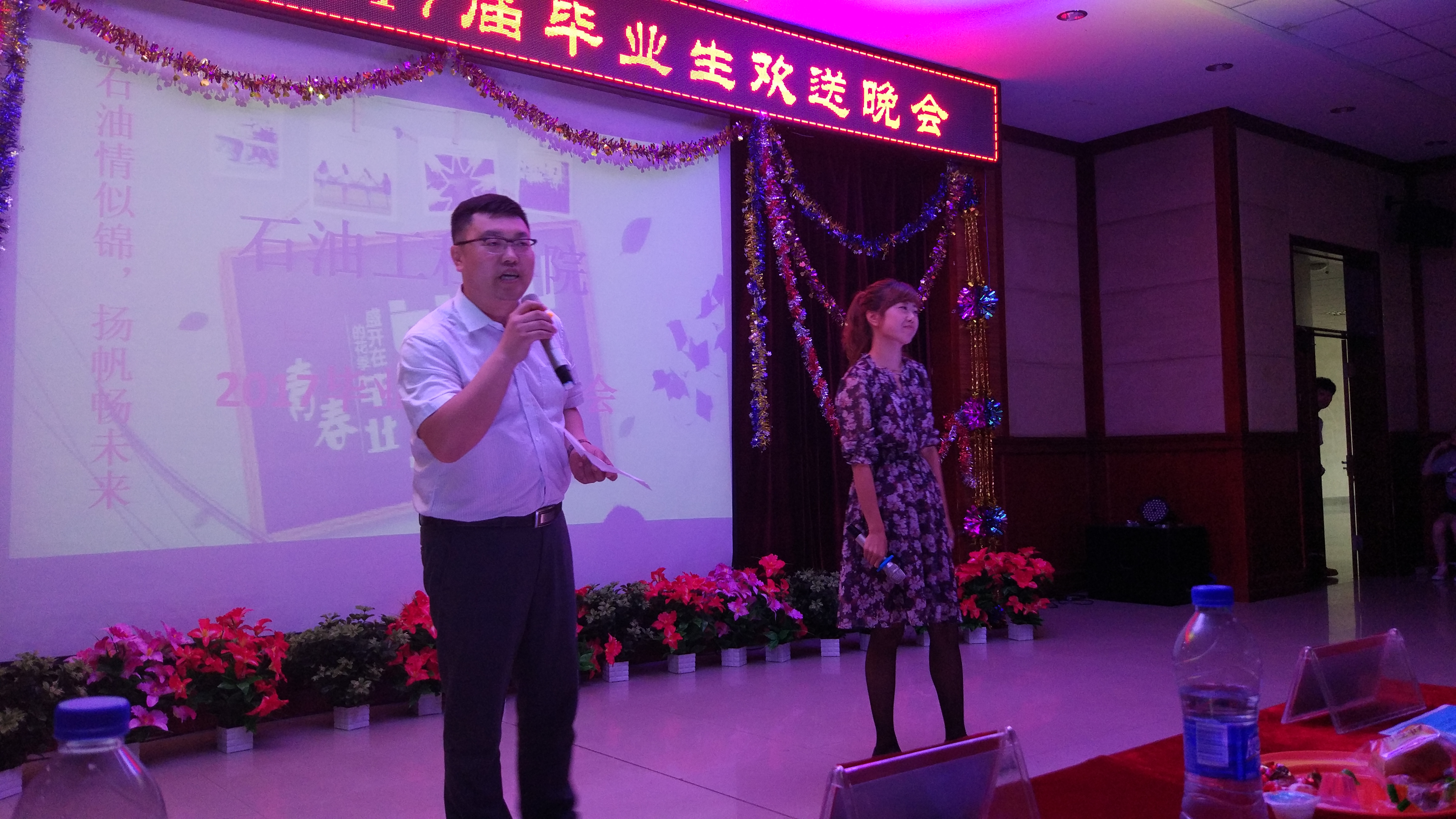 六月盛夏,又是一年毕业之际,为表达我院对即将毕业的学子们的关怀,留下美好的大学回忆。6月14日下午5点30分,石油工程学院在主教518教室举办了“石油情似锦,扬帆畅未来”2017届毕业生欢送会。校学工处副处长、校团委书记王锦石、校团委副书记彭雷、校网络中心主任毛雷、石油工程学院党总支副书记康平军、团总支书记张雪、13级学生辅导员王昱,15级学生辅导员于洪峰以及石油工程学院全体2017届毕业生参加了这本次晚会。