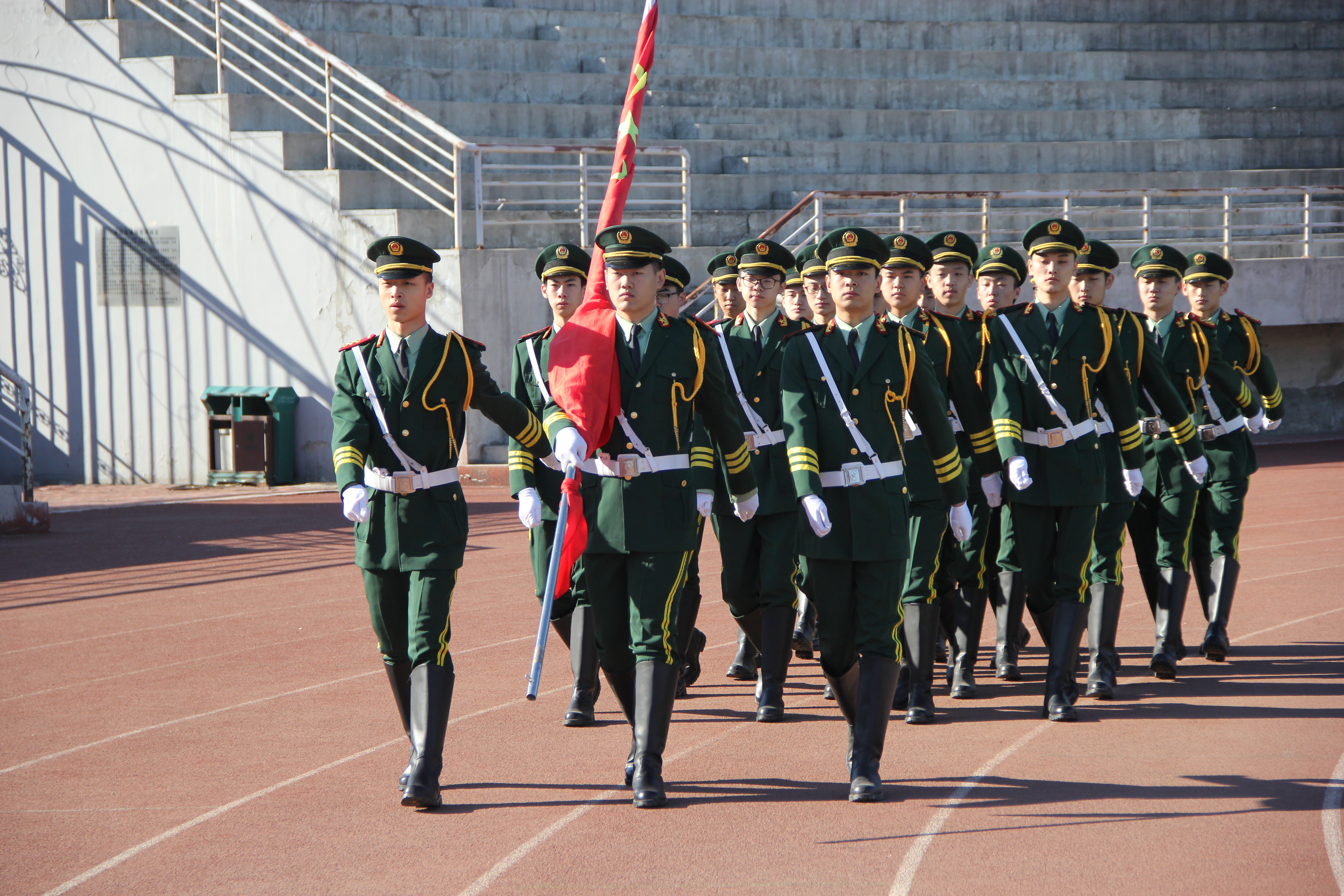 升旗仪式开始后主持人宣读开场词、介绍到场嘉宾、人员。进行仪式第一项,升国旗,唱国歌。仪式第二项,我院学生会主席王程珑进行国旗下演讲。仪式第三项,领誓人带领全体人员面向团旗宣誓。仪式第四项,宣读相关倡议书。仪式上国旗班配合着庄严的义勇军进行曲,将五星红旗缓缓升起。