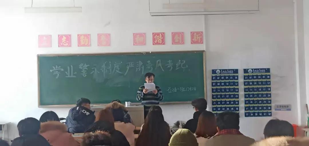 期末考试临近,为贯彻落实石油工程学院“加强考风考纪,构建诚信校园”的工作,我院石油工程专业各班主任教师近期为各班级举行“严肃考风考纪,加强学风建设”主题班会。