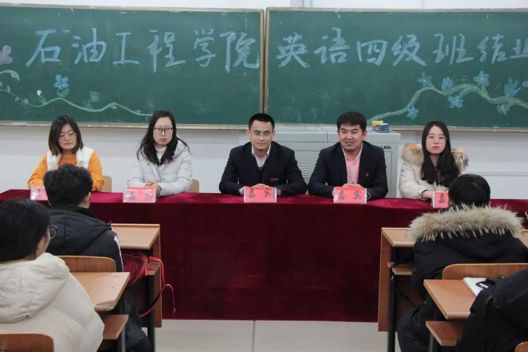 2019年12月12日晚,我院在主教502教室举办了英语四级班结业仪式。石油工程学院党总支书记刘雁春,副院长李岳祥,四级班辅导教师李井洋、叶雪、齐梦出席本次仪式,仪式由李井洋老师主持。