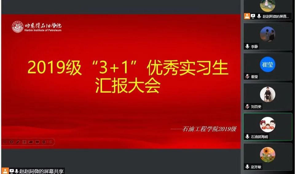 为在“3+1”企业综合实习期间增进与学生之间的交流,加强学生管理,进一步增强学生的安全生产意识,石油工程学院2019级于2022年11月9日,召开本学期第五次线上“3+1”实习安全教育暨优秀实习生交流主题班会,会议邀请了2019级实习学生李婧(现就职于浙江石油化工有限公司)、崔莹(现就职于盛虹石化集团有限公司)、董靓(现就职于长春众诚能源集团)3位代表发言,会议由2019级辅导员郭海明主持。