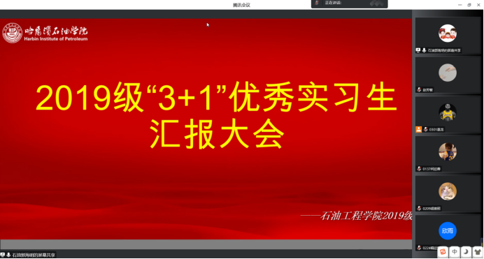 为了增强石油工程学院2019级学生实习就业意识,明确今后人生目标和就业方向,提升就业层次和就业质量,激励实习学生在工作岗位上努力学习、超越自我,同时加强实习安全教育,保障自身安全,增强安全实习的责任感和使命感,确保把安全实习落到实处。2022年10月12日,石油工程学院于线上组织召开“3+1”优秀实习生交流主题班会,会议邀请了2019级实习学生石秋月(现就职于浙江石油化工有限公司)、沈志豪(现就职于盛虹石化集团有限公司)、葛龙(现就职于宁波金发新材料有限公司)、王文媛(现就职于浙江石油石化有限公司)4位代表发言,2019级学生共221人参加,会议由2019级辅导员郭海明主持。