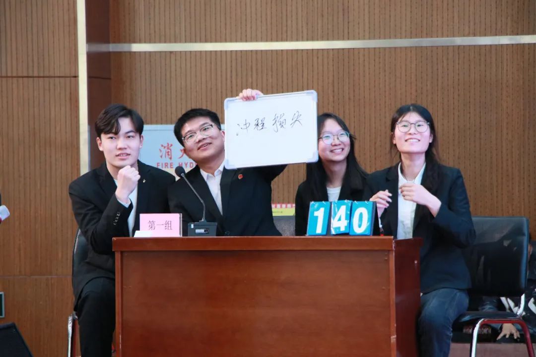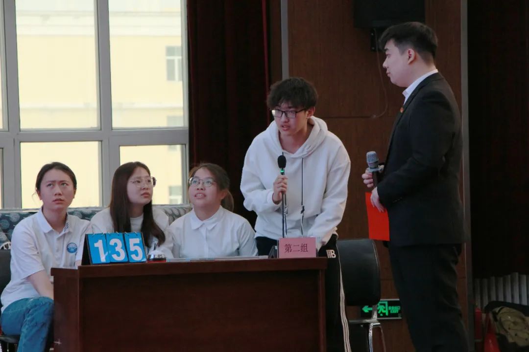 决赛共分为团队必答题、团队抢答题、团队风险题以及加时赛四个环节,各小组两两对决,采用记分排名制。这是一场没有硝烟的战争,也是一场精彩绝伦的文化盛宴,各队选手沉着冷静、全神贯注、尽显风采,在赛事主持人刘芯蕊、王一涵的组织下,经过激烈的比拼,最终*冲锋队*获得季军,*黑金队*获得亚军,*我们想不出队名队*获得冠军。同时,现场评委教师们投票选出了本次竞赛的最佳选手——周文杰、赵玉玲。