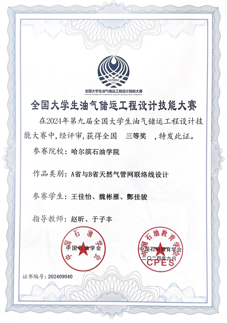 石油工程学院油气储运工程专业学子与来自中国石油大学(华东)、中国石油大学(北京)、西南石油大学、东北石油大学、重庆科技大学等33所高校同台竞技,经过网络初评和决赛,最终获得国家三等奖一项。