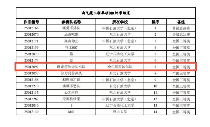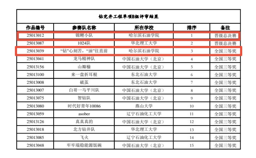 近日,第十五届中国石油工程设计大赛北部赛区竞赛在北京石油勘探开发研究院圆满落幕。石油工程学院由郑洲老师带队,夏长元、李岳祥、张国芳、王福平等教师团队全程指导,共派出六支队伍参赛。学子们凭借扎实的专业功底、创新的设计理念和出色的团队协作能力斩获佳绩:其中五支队伍荣获全国三等奖,而由夏长元老师指导、队长孙熙涵与队员郭子涵领衔的“锦鲤小队”更以卓越的专业素养和创新实践能力成功晋级总决赛。生动展现了石油学子深耕学术的严谨态度与锐意进取的青春风采。