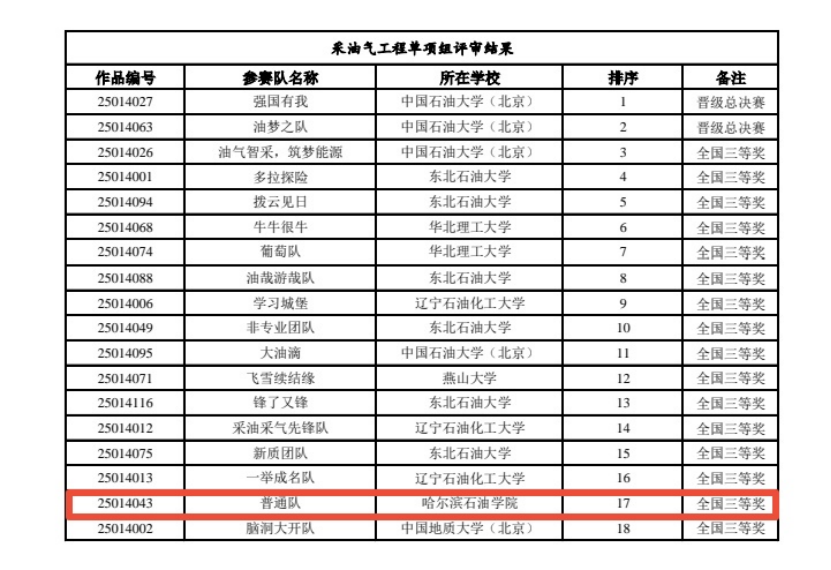 本次大赛由中国石油学会、中国石油教育学会等联合主办,吸引了全国多所高校的优秀学子同台竞技。赛事聚焦油气田开发、工程设计、技术创新等核心领域,旨在通过实践与理论结合的方式,提升学生的工程素养和解决复杂问题的能力。本次北部赛区共有17所高校(科研院所)参赛收到有效作品481组,其中有112组作品晋级北部赛区区域赛。评审过程中,评委们按照《第十五届中国石油工程设计大赛实施方案》及《第十五届中国石油工程设计大赛评审办法》,经书面审阅、参赛队伍答辩、评委提问等评审环节,最终评选出26支队伍晋级全国决赛,其中伟德官网进入总决赛队伍1支,荣获国家级三等奖队伍5支。