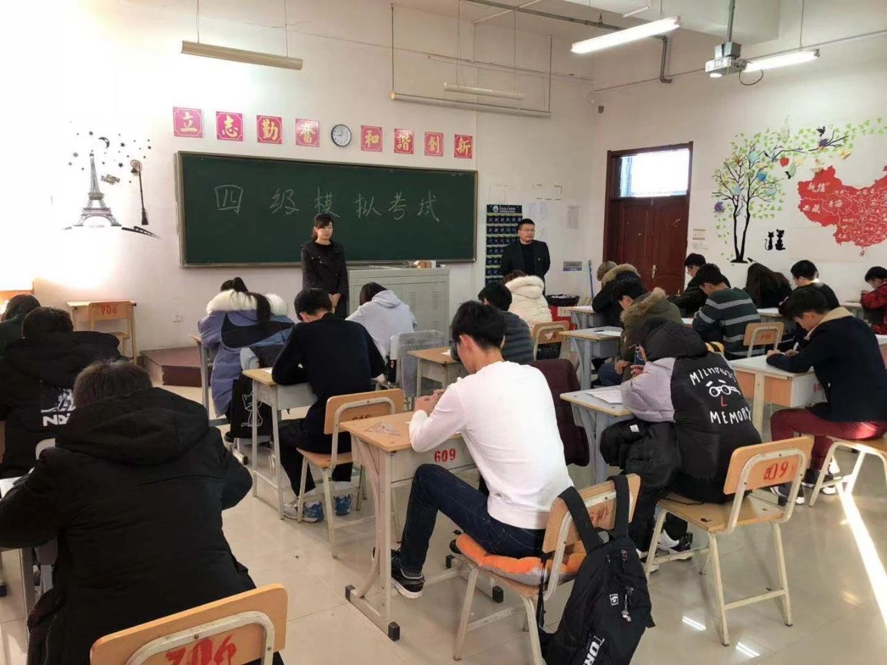 考试由实验班辅导员王昱及班主任王勇担任监考教师。考试开始前二十分钟,全体考生按要求携带学生证、身份证、“准考证”进入考场并按指定位置坐好,监考教师在开考前宣读考场纪律并当众拆封试卷分发。考生在指定位置填写个人信息并填涂答题卡。整场考试严格按照全国大学英语四级考试的标准流程组织。考试结束后,实验班学生表示,本次模拟考试对他们来说是一次至关重要的经历和体验。通过这次考试,同学们了解了考试题型及考试流程,为参加正式考试奠定了基础。