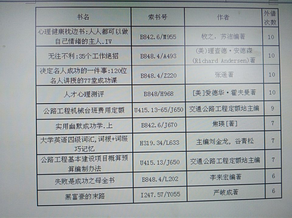 5、馆藏热门图书借阅排行榜TOP10