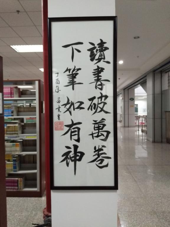 本次展出作品均为伟德官网在校生作品,4月25日,图书馆联合校“云策”书法协会共同举办了主题为“书香云策”的现场书法创作活动,“云策”书法协会的十余名同学参加了本次活动,现场书写了四十余幅毛笔字作品。这些优秀作品被装裱展出,静待广大师生及参观者欣赏。