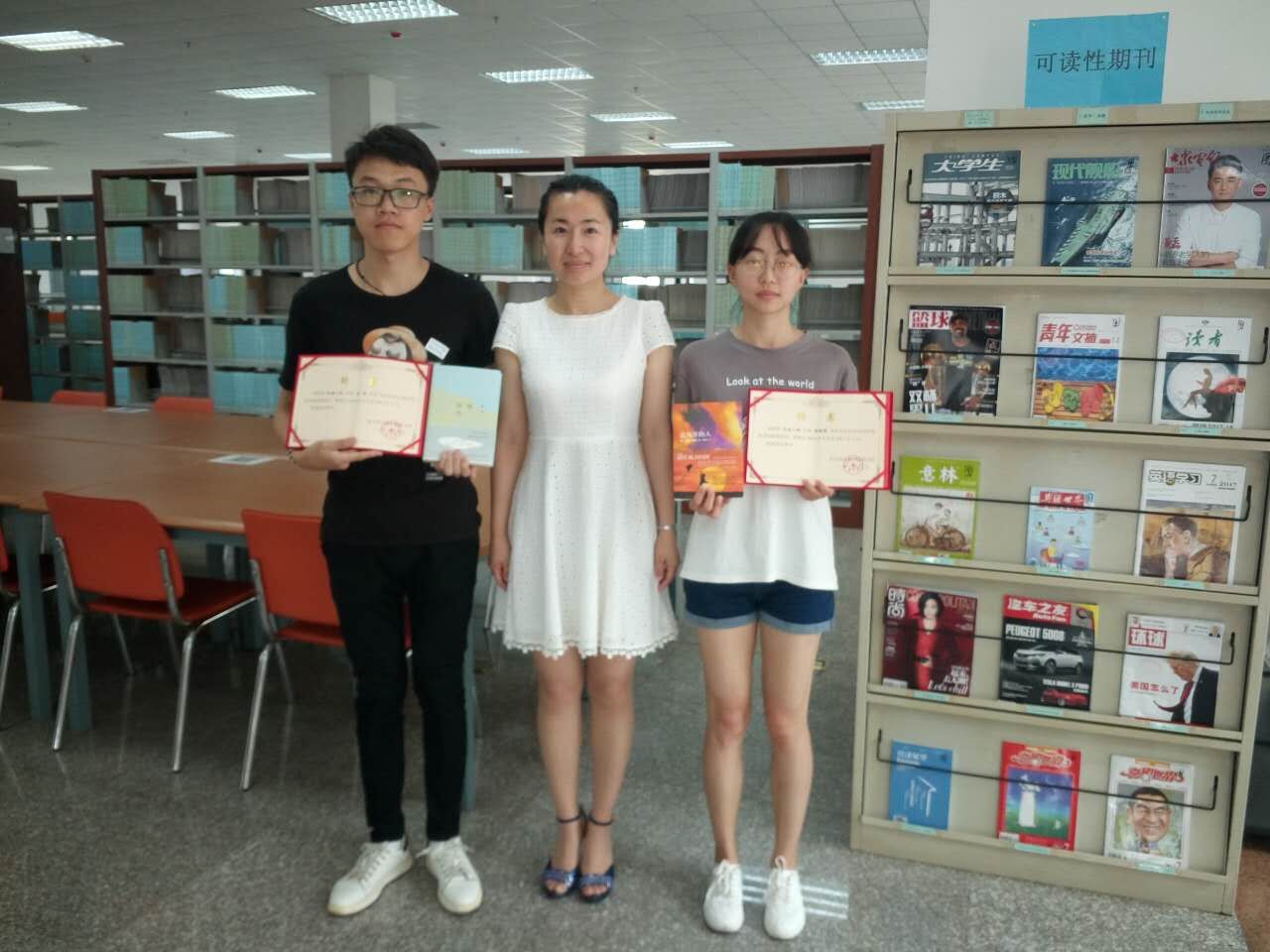 本学期图书馆优秀学生助理馆员到馆领取聘书及奖品