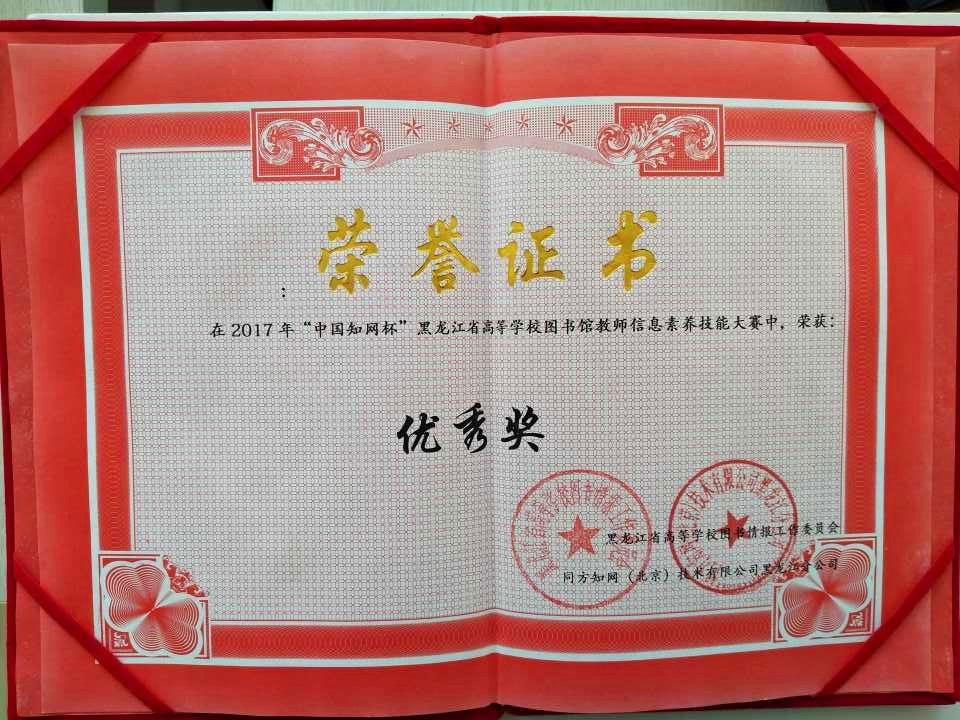 2017年11月17日,“中国知网杯”黑龙江省高等学校图书馆教师信息素养技能大赛决赛暨颁奖典礼在哈尔滨学院图书馆报告厅举行,伟德官网图书馆在本次比赛中荣获优秀奖。