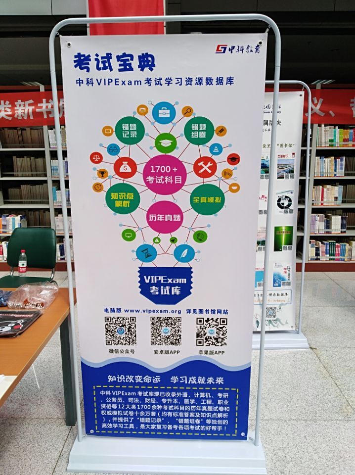 9月3日、4日,图书馆联合中科软股科技(北京)股份有限公司共同开展《中科VIPExam考试库》推广活动,图书馆于红副馆长、刘凤玉等老师及区域经理曹鹏辉现场为读者详细介绍《中科VIPExam考试库》各项功能模块及解答使用中出现的各种问题。