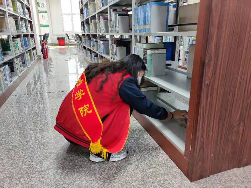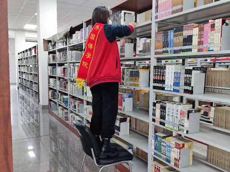 3月22日下午,外语学院10名志愿者及信息学院2名志愿者来到图书馆进行书架的卫生清洁工作,与图书馆馆员老师一起度过了有意义的时光。