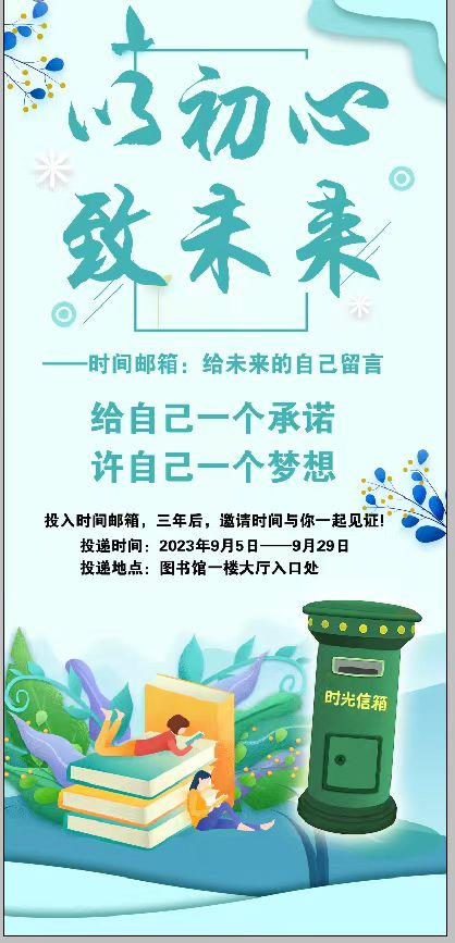 站在新学期的起点,写下你对未来的祝福和期望,邀请时间与你们一起见证,图书馆会在3年后将封存的信件再次送到你的手中,来日方长定不负初见!