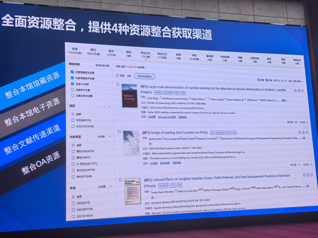 随后具体地向我们展示了四大检索方式:整合本馆馆藏资源、整合本馆电子资源、整合文献传递渠道、整合OA资源,这些可以帮助实现资源规范化、系统化、整体化,有效提高了图书馆馆藏纸电资源的利用率。