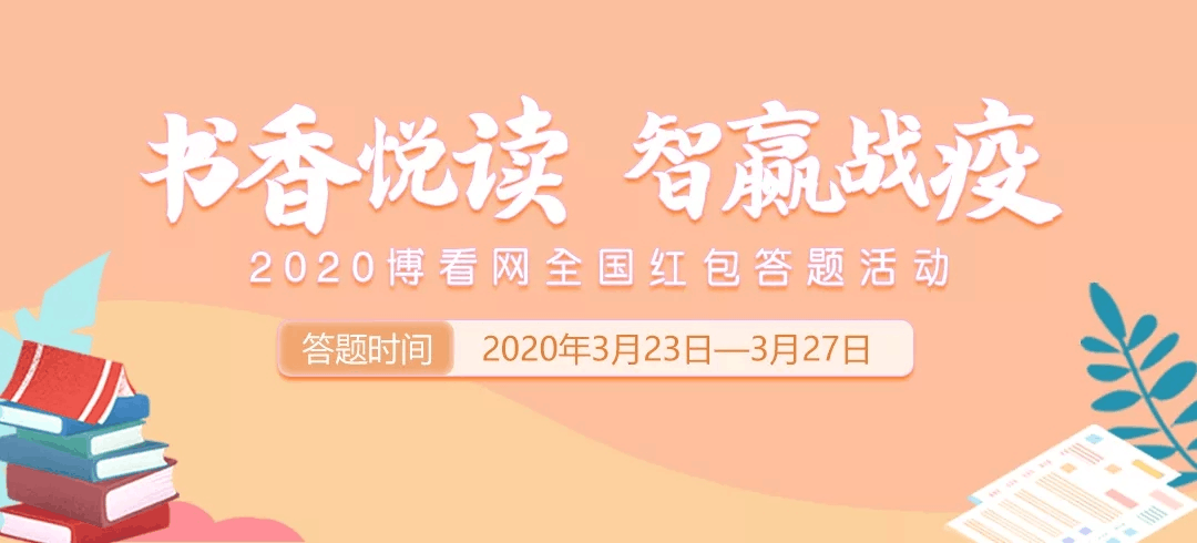 目前新冠肺炎疫情防控形势出现积极向好的态势。作为武汉本土企业,博看网也在用实际行动支持复工复产,特联合全国高校及公共图书馆,面向全国读者用户推出“书香悦读智赢战疫”红包答题活动,进一步普及新型冠状病毒肺炎相关防控知识,帮助广大读者树立科学抗疫防控意识。用实际行动感谢图书馆各界对武汉人民的关爱和支持。