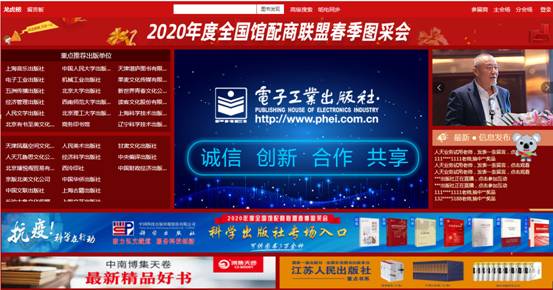 主会场:右上角展示相关人员讲话及平台消息发布。其他板块主要展示重点出版社书目,直接点击出版社名称即可进入选书界面。