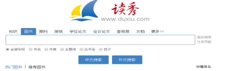 读秀知识库是由海量全文数据及资料基本信息组成的超大型数据库。其以630多万种中文图书、16亿页全文资料为基础,为用户提供深入内容的章节和全文检索,部分文献的原文试读,以及高效查找、获取各种类型学术文献资料的一站式检索,周到的参考咨询服务,是一个真正意义上的学术搜索引擎及文献资料服务平台。