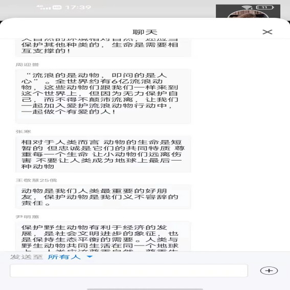 通过这次线上会议,同学们更加深入的了解到保护野生动物的重要性。动物是人类的朋友,它们都是地球大家庭的一员,保护动物从自身做起,从身边做起,相信大家的保护意识会越来越强。保护动物,维护自然生态平衡,关系到人类的生存与发展。所以,作为大自然中的一员,我们应该从自己力所能及的事情做起。