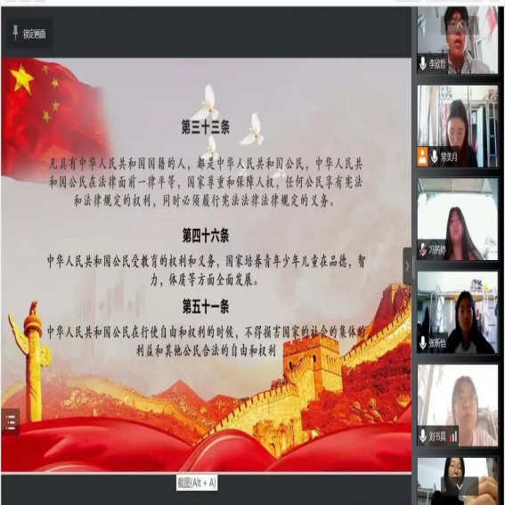 活动由各班班长带领同学们进行,同学们利用早读时间诵读相关内容并且重点学习到了:习近平法治思想,特别是关于宪法的重要论述;党的十九届六中全会精神;中华人民共和国宪法;社会主义核心价值观;中华人民共和国民法典,疫情防控相关法律法规等。