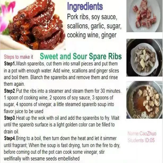 《综合英语》课特色作业:中国菜谱