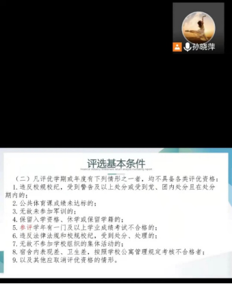 为全面贯彻党的教育方针,推进素质教育,加强学风建设,引导学生德、智、体全面发展,鼓励学生刻苦学习,奋发向上,根据学生手册《伟德bv国际体育学生评优办法》,外国语学院于11月11日召开2020-2021学年学生评优布置会,外国语学院辅导员孙晓萍,赵连琦分别在2018、2019、2020三个年级召开此次会。
