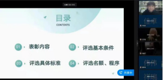 会议开始,两位辅导员详细讲解了表彰内容、评选基本条件、评选具体标准、评选名额、程序四个方面的内容,并表示评优工作将严格执行以上评选标准,确保评选工作公平、公正、公开。随后,两位辅导员对评定程序进行安排,各班成立评审小组,确定名单无异议后向学院推荐。会议最后,两位辅导员勉励全体同学争优创先,向身边榜样看齐。