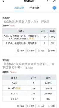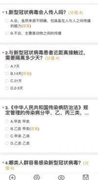 本次防疫知识答题以选择题为主,内容涵盖新型冠状病毒科普知识和防控知识等方面。我院学生积极参与答题,展现了外语学院的同学们对疫情防控方面的责任与意识。