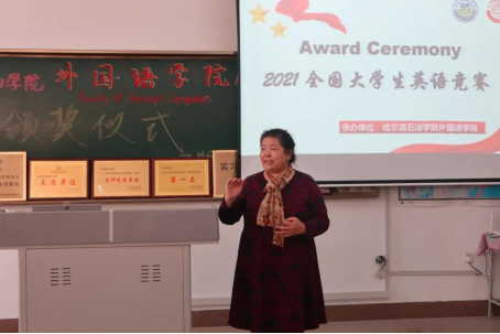 为表彰参赛学子在大学生英语竞赛中取得的优秀成绩,外国语学院于10月26日举办2021全国大学生英语竞赛颁奖仪式,本次活动由王慧宇老师担任主持人。院长王莉娅,副院长高丽娜出席本次活动。