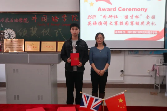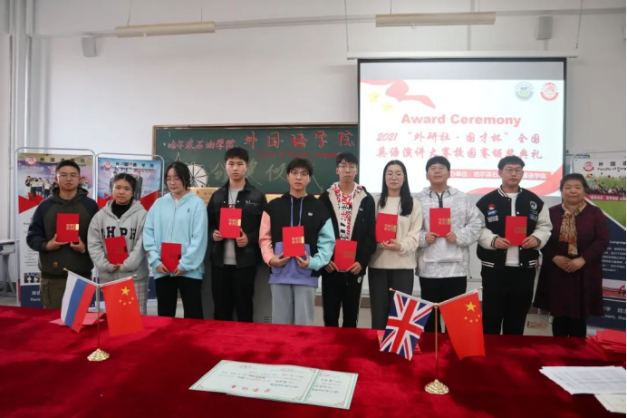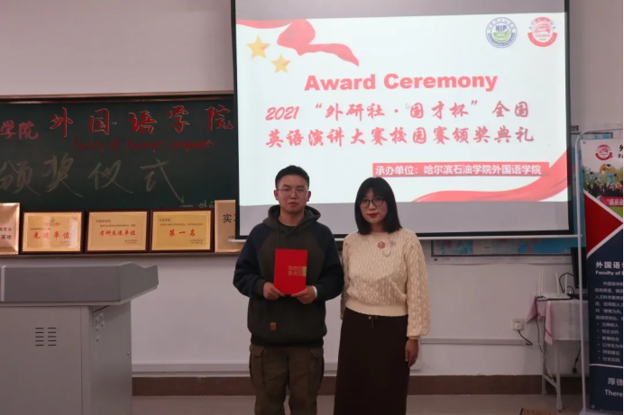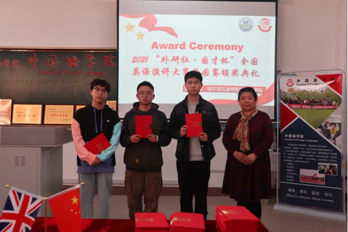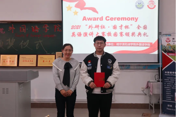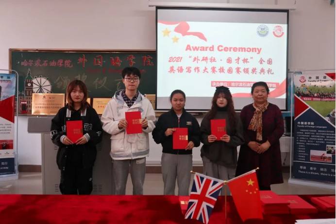 为树立我院积极进取、拼搏奋进的先进典型,激励广大青年学生向身边的榜样学习,锐意进取,超越自我。10月26日,外国语学院举办“外研社·国才杯”阅读、写作、演讲大赛颁奖仪式。本次活动由王慧宇老师担任主持人,院长王莉娅,副院长高丽娜,张丽等教师代表及全体获奖同学出席本次活动。