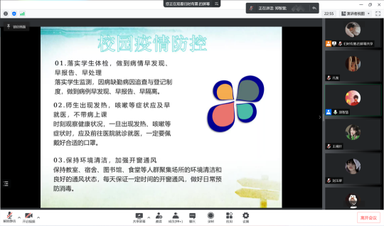 本次活动,由各辅导员们从防疫安全、人身安全、心理健康、防诈骗等方面向同学们进行全面且详细讲解,同学们认真的观看幻灯片学习相关知识。辅导员们强调五一假期将至,由于当前全国疫情形势较为严重,未返校的同学尽量避免大范围走动,在保护自己安全的前提下放松身心,有什么情况及时向辅导员反映,学校会在各方面为同学们保驾护航。