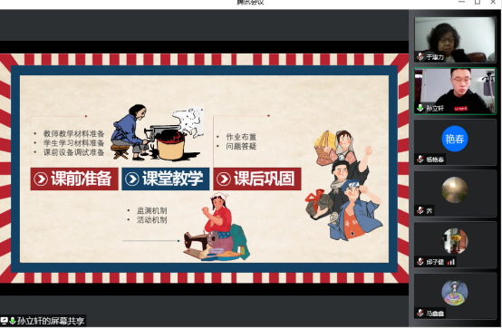 2022年4月26日下午13:00-14:30在腾讯会议举行了线上教学分享会暨期中教学检查工作会议;外国语学院全体教师出席了会议,并邀请学校总督学于惠力和邱子健老师莅临指导。