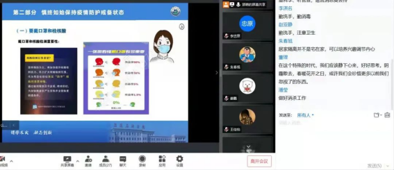 郭萌老师引导同学们正确看待疫情防控,平和心态,营造健康和谐的线上教学氛围。