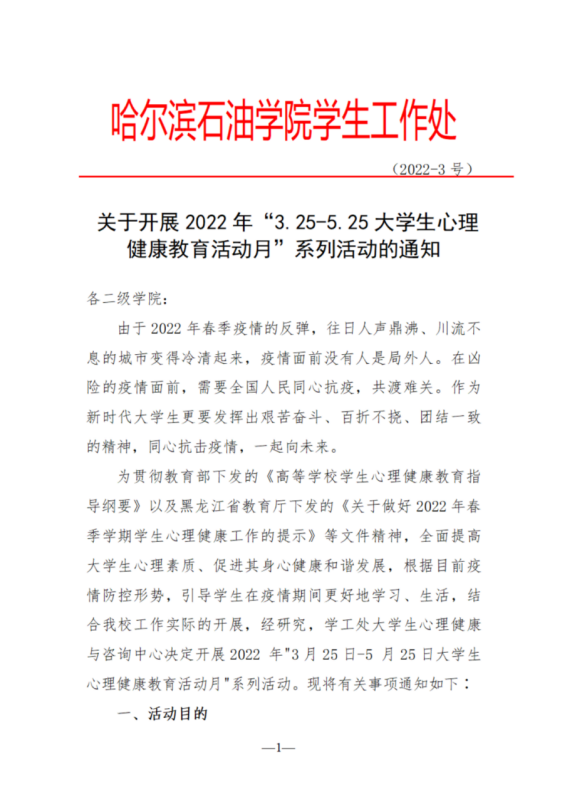 为全面提高大学生心理素质、促进其身心健康和谐发展,根据目前疫情防控形势,引导学生在疫情期间更好地学习、生活,结合伟德官网工作实际的开展,经研究,学工处大学生心理健康教育与咨询中心决定开展以“同心共抗疫,一起向未来”为主题的2022年“3.25-5.25大学生心理健康教育活动月”系列活动,因疫情防控需要,所有活动线上举行。