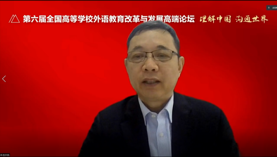论坛邀请了中宣部领导、教育部领导、教指委与高校领导及高等外语教育专家学者发言,全国高校外语教育同仁云端参会,聆听智慧之言、碰撞思维之火、探讨发展之路,成果丰硕。中宣部国际传播局陈雪亮副局长,教育部高等教育司武世兴副司长,中国原驻英国大使查培新,北京外国语大学党委书记王定华教授,教育部高等学校教学信息化与教学方法创新指导委员会主任委员、武汉理工大学校长杨宗凯教授等领导和专家作了主旨发言,以高远站位把舵领航,以多元视角拓宽视野,切实指导中国高等外语教育开拓前行。