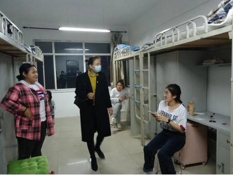 为及时了解新生对大学校园生活的适应情况,让离家远行的新同学们感受到外国语的温暖,16日晚,外国语学院党总支副书记孙晓萍及外国语学院辅导员走访外国语学院2021级新生寝室,亲切询问同学们的生活状况,希望同学们能快速适应新生活,抓住新机遇,开启新旅程。