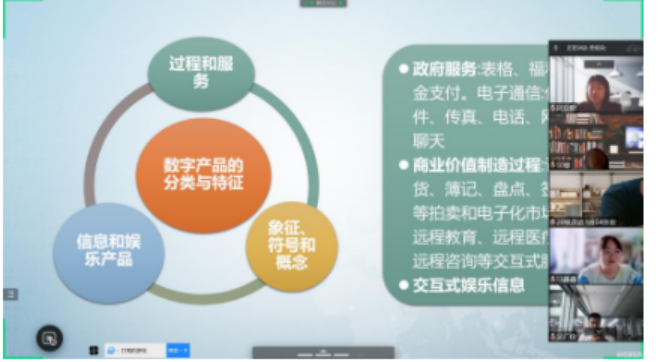 《电子商务概论》旨在培养学生在新的网络经济形势下,能够熟练掌握网络环境下开展商务活动的基本知识、基本原理和基本运作管理技能。是英语专业的专业选修课。线上教学期间,为了使学生更好的理解、掌握课本中所涉及的知识,田佳良老师基于雨课堂和腾讯会议平台,结合章节的学习目标要求,采取多模态教学模式——测试、看视频、弹幕、随机点名、连麦回答等多种灵活互动。