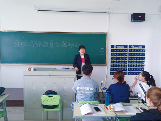 外国语学院辅导员赵连琦在班会中提醒同学们要以诚为本,作一个诚实守信的好公民,并宣传了国家助学贷款及其它的资助政策,普及征信、金融等相关知识,宣讲诚实守信相关实际,倡导契约精神,促使学生树立诚信观念、增强法律意识,自觉履行生源地信用助学贷款合同,有效地将诚信教育转化为大学生自觉的素养与行为。