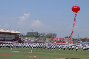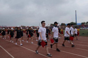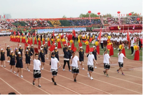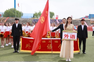 这是奋勇争先的盛会,这是努力拼搏的舞台。在外国语学院院长王莉娅的带领下英姿勃勃的师生检阅队伍入场。他们的脸上洋溢着自信的微笑,骄阳似火,热情高涨,向全校师生展现出外语学院的特色与朝气。
